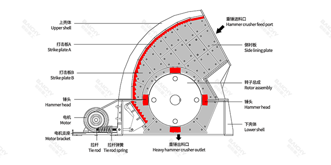 作業(yè)中的損耗小,維修率低,配件更換周期長,設(shè)備的使用壽命大大提高。單套錘頭壽命提升30%;整體結(jié)構(gòu)緊湊,軸承、轉(zhuǎn)子等核心部件強(qiáng)化防護(hù)。
